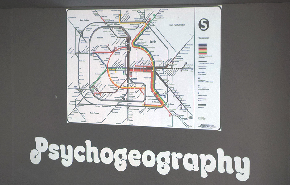 Psychogeography is essentially the study of the ‘psychology of place’. Why are we drawn to certain places? How do certain places effect us in a profound way? Be that positivity or negatively. The best real world example of a negative outcome is Hostile Architecture – examples being bars on windows, barbed wire on fences, and some bureaucratic places, like jails, airport security. This course will focus on an action or movement, something which we do everyday but usually in a state of unawareness. It is an exercise, a practice, a mode of thought. We can think of this exercise as being “Embodied Walking”. This is a constructive behaviour with an awareness of the effect the city is having on you. The Situationists – led by Guy Debord understood this emotional mapping of the city as a rebellious act against the urbanisation and gentrification of the city. We will be using the Industriebahn location as our source for mapping, locating significant personal responses to place. The lecture will cover the history of psychogeographical drawn and collaged maps, looking at contemporary drawing practice in particular. We will be creating a drawn map that reflects the experience of looking at the Industriebahn with new eyes and using this sense to reflect on our experience of being in the larger city of Berlin.