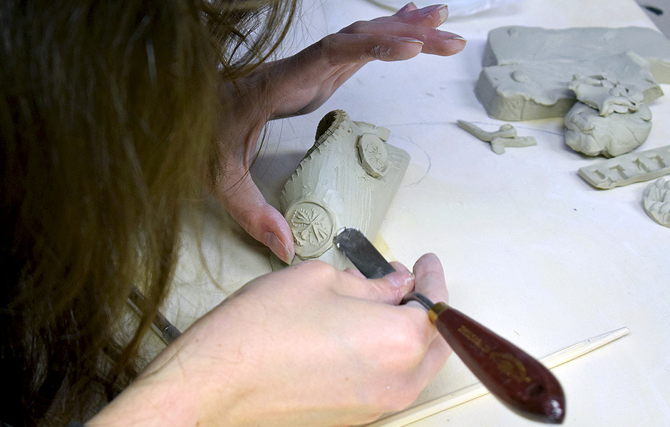 Der Kurs beginnt mit einer kurzen Einführung in die Geschichte der bildhauerischen Keramik, beginnend mit Bernard Palissy und den Gebrüdern Martin und endet mit einem Schwerpunkt auf der kalifornischen Bewegung der 1960er Jahre, bestehend aus Viola Frey und Robert Arneson. Wir werden mit Ton arbeiten, der feine Details und eine sorgfältige Konstruktion ermöglicht. Der praktische Kurs konzentriert sich auf das, was man bei der Herstellung von Keramik tun und lassen sollte, und vermittelt die Grundlagen der Herstellung komplizierter Keramiken. Der Kurs befasst sich auch mit der Zeitmessung und dem Ritzen von Keramiken. Wir werden eine Reihe von Stempeln herstellen und Zweige auf Fliesen oder Vasen verwenden. Wir werden auch ein keramisches Schmuckstück herstellen und dabei über Symbole und Archetypen nachdenken.