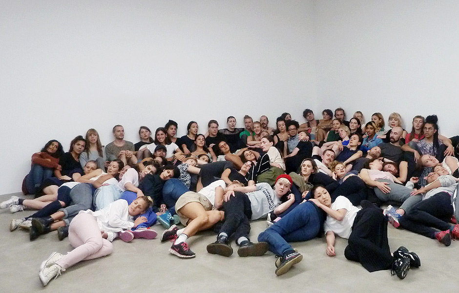 „Der Neue Berliner Kunstverein präsentiert die erste Einzelausstellung von Alexandra Pirici in Deutschland. Als lebendiges Environment angelegt, bildet die Ausstellung Aggregate den Rahmen für über 80 PerformerInnen, die zusammen mit den BesucherInnen den Ausstellungsraum in einer Schwarmbewegung definieren. Basierend auf verkörperten Erinnerungen, die Fragmente eines gemeinsamen Welterbes verhandeln, nimmt das Werk Bezug auf Versuche der Menschheit, wesentliche Aspekte ihres Daseins in Zeitkapseln festzuhalten, wie etwa in Form der „Voyager Golden Records“ der NASA, die ausgewählte Informationen zum Leben auf der Erde anderen, außerirdischen Spezies zur Verfügung stellen sollten.