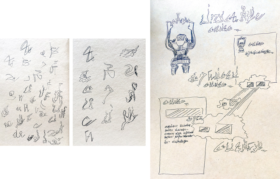 In diesem Kurs werden wir die freien Assoziationen, die beim “Füllen der Leere” hervorgerufen wurden, nutzen, um weiter mit konstruierten Sprachen zu experimentieren. Asemisches Schreiben ist die Handlung, durch die der Künstler eine persönliche Sprache erfindet, die dem Leser zum Ausfüllen und Interpretieren überlassen wird. Der Kurs beginnt mit einer kurzen Einführung in die Geschichte der Künstler, die ornamentale Sprache und das automatische Schreiben der Surrealisten verwenden. In einer Reihe von Übungen werden die Möglichkeiten automatischer Zeichentechniken, asemischer Alphabete und Verbindungen von Bildern und Beschreibungen, die offen für Interpretationen sind, erkundet. Die technischen Aspekte werden Fähigkeiten nutzen, die mit der kalligrafischen Feder in der Tuschezeichnung geübt wurden.“ (Text: Courtesy Emily Hunt)