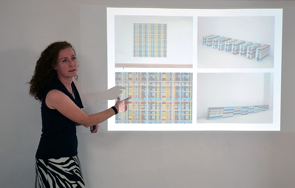 „In erster Linie erzählen uns Bilder etwas über unsere visuelle Wahrnehmung. Wie nehmen wir Farben, Formen, Raum, Licht, Materialität usw. wahr? Dies ist allein schon ein weites Forschungsfeld. Doch darüber hinaus müssen Gemälde substanzielle Aussagen enthalten, die sie letzendlich als Kunstwerke definieren. Kunst ist ein Generationen übergreifendes Kommunikationsmittel. Deshalb bedeutet künstlerisches Arbeiten, die wesentlichen Fragen unserer Zeit aufzuspüren und zu formulieren. Anhand meiner eigenen Arbeit und ausgewählter Werke anderer Künstler möchte ich in diesem Vortrag erläutern, wie man, indem man den eigenen formalen Interessen folgt, schließlich zur zentralen inhaltlichen Aussage gelangen kann. “ (Text: Courtesy Doris Marten)