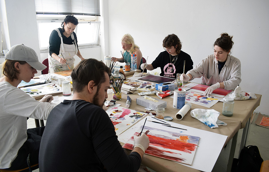 In this workshop, participants will learn how to depict different light situations and colors in oil painting and how to distinguish between the representations of color as such and color as a depiction of light. Moreover: in several practical sessions, they themselves will develop a feeling for the ways in which light and color can be best represented in their work. The workshop participants will also accquire knowledge on the use of oil paint/water-based oil paint and the corresponding solvents. (Text by courtesy of Anna Slobodnik)