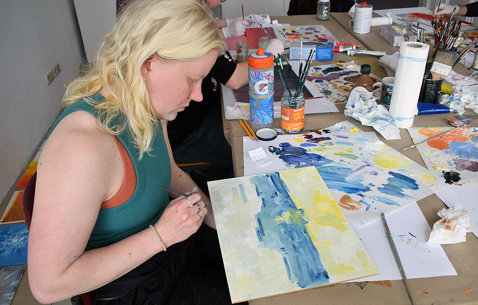In the first practicall session of the second day, each participant picks a ticket with a color, that they will represent as the main element in their painting. The aim is not to paint a painting with only one color, but rather to develop a painting based on this color and a desired color effect.